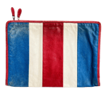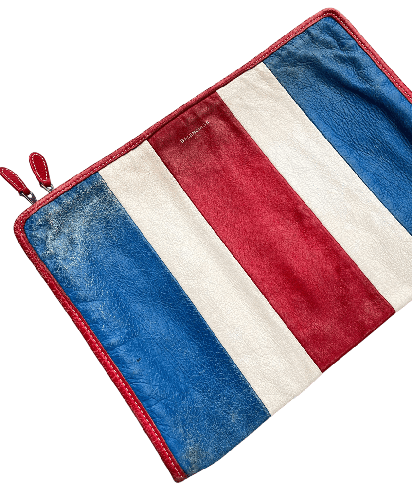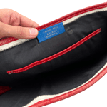 This soft red leather clutch features 2 zipper compartments with classic city bag hardware as well as a key ring.