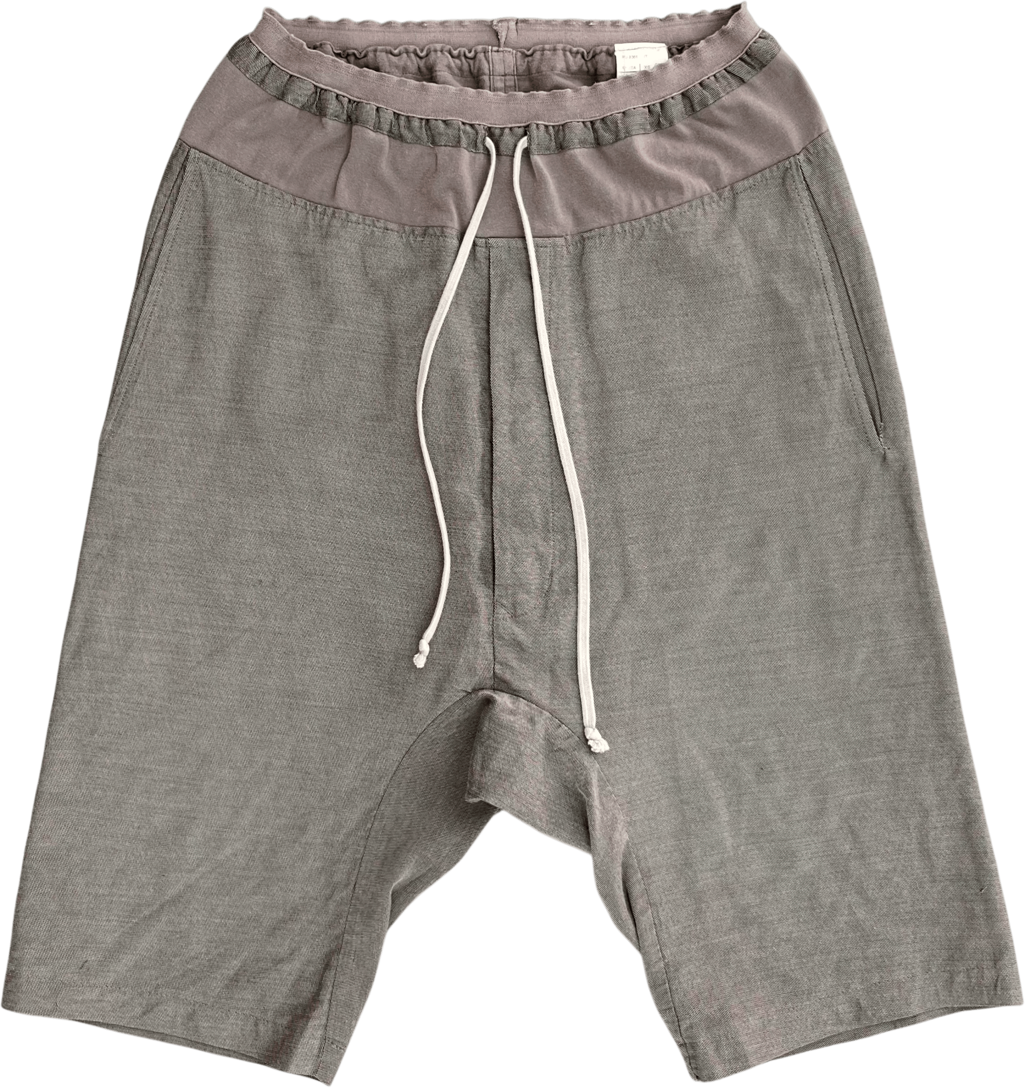 These Cotton/Nylon/Metal blend shorts are from S/S 2011 "ANTHEM" collection The "Dust" colored bottoms feature 4 pockets as well as Rick Owen's signature elongated drawstrings and drop crotch. Very Rare.