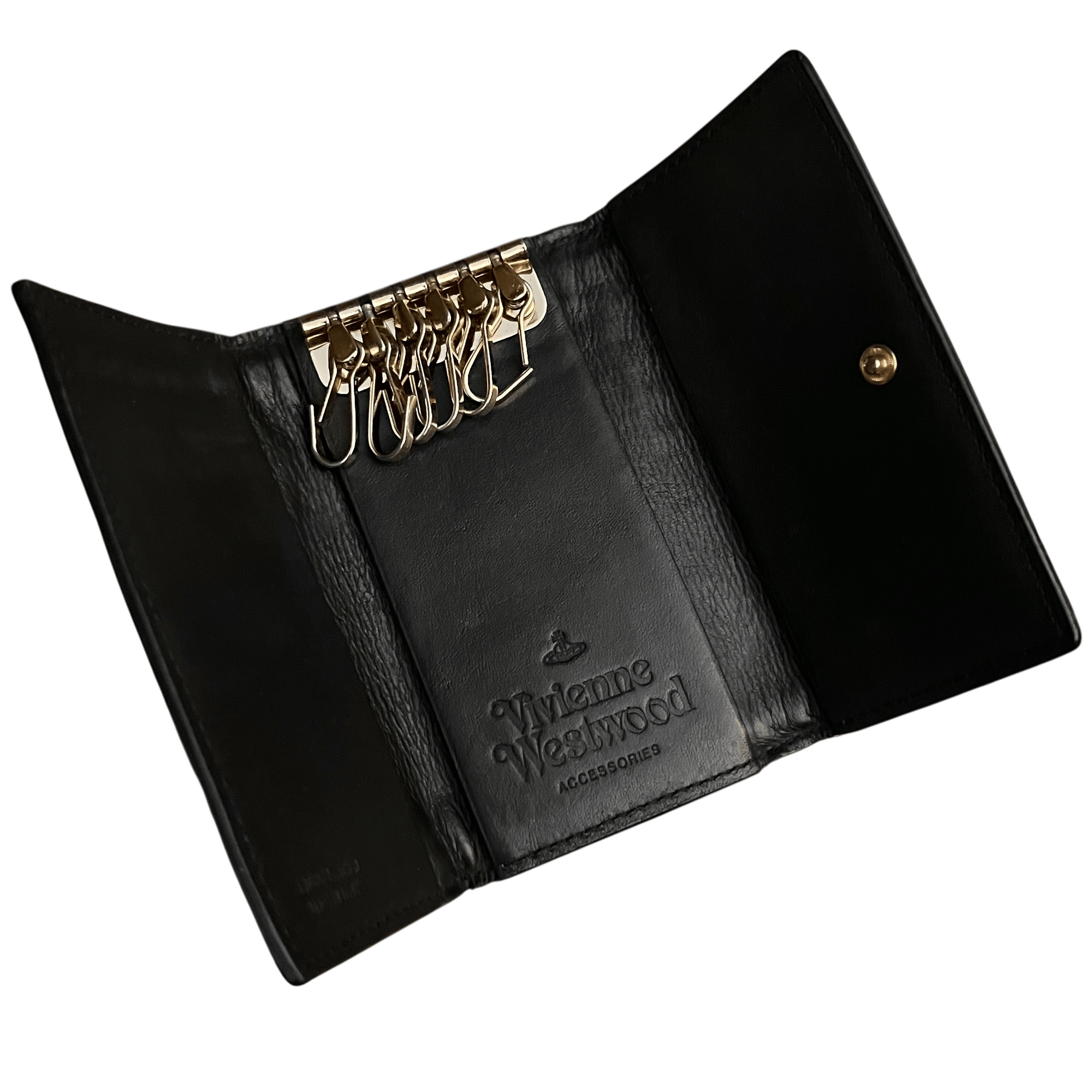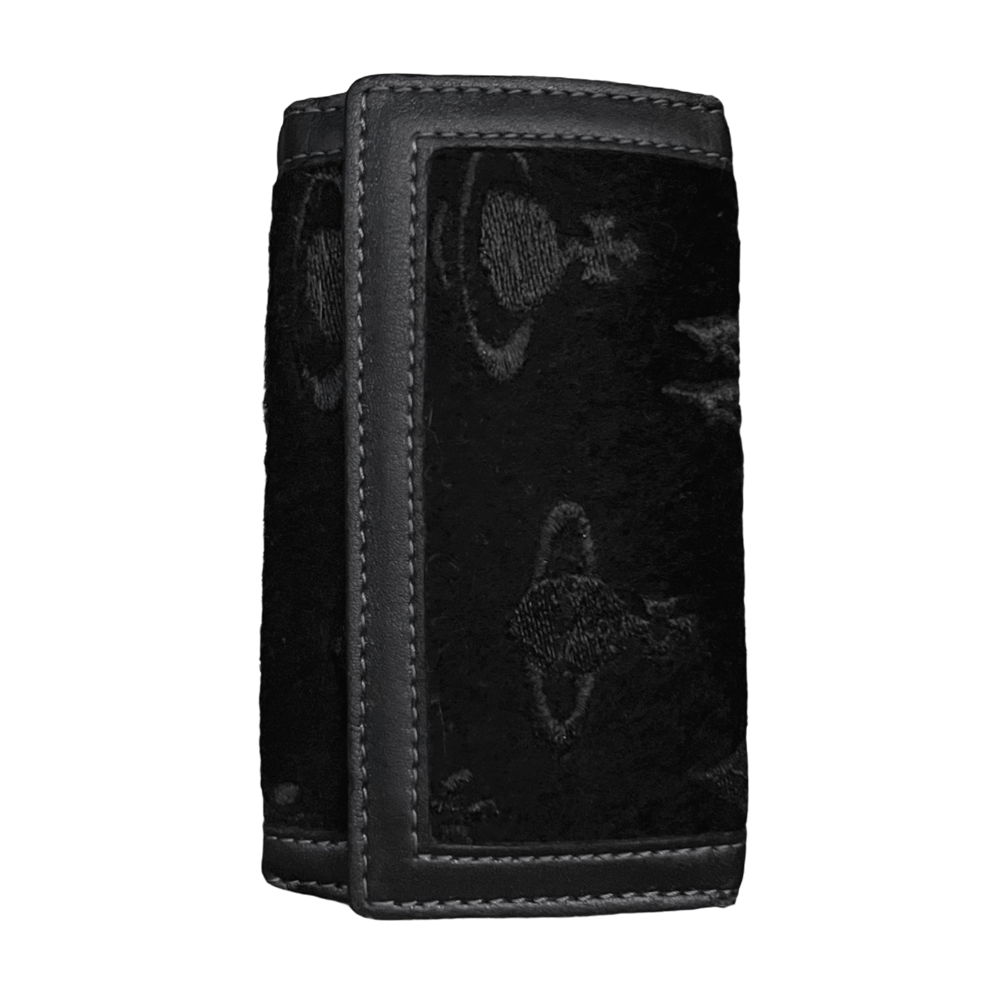 This key holder is made of black leather and woven cotton with embroidered classic VW logos such as the iconic orb. It features 6 key claps and 2 interior slit pockets for cards